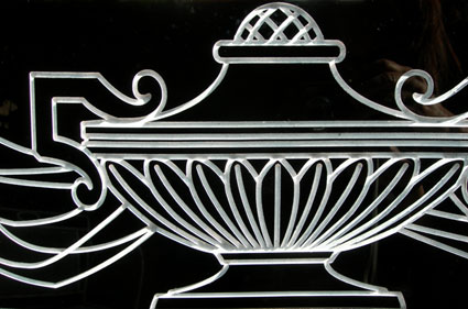 graphic and 21st century interpretation of 18th century urn + swag imagery,