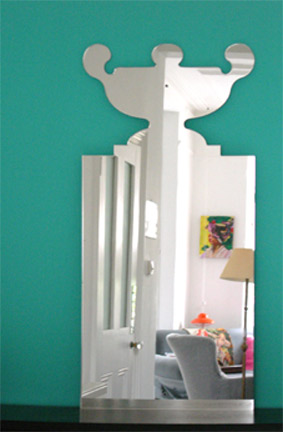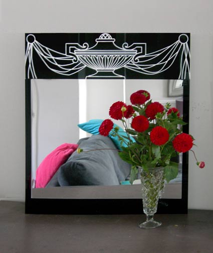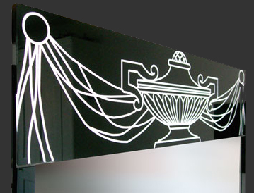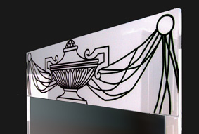 to The Perspex mirror frames carry laser etched motifs inked in a contrasting colour. The manufacturing method allows clients to specify a size and colour appropriate for their scheme. For colour swatch link to perspex / lucite colour range Any size up to 3 metres can be specified.